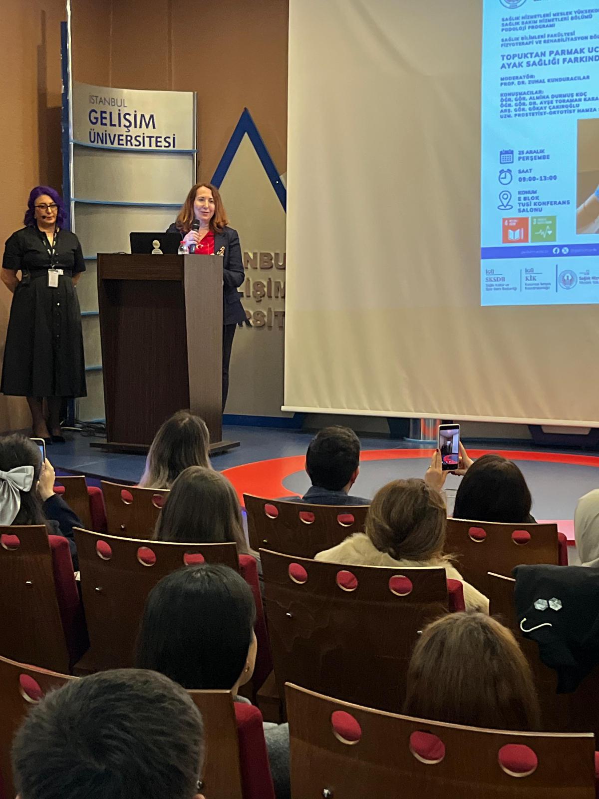 Fizyoterapi ve Rehabilitasyon ile Podoloji disiplinlerinin ortaklığında hayata geçirilen panelin moderatörlüğünü Prof. Dr. Zuhal Kunduracılar (İGÜ Sağlık Bilimleri Fakültesi Fizyoterapi ve Rehabilitasyon Bölüm Başkanı) üstlendi. Açılış konuşmasında Prof. Dr. Kunduracılar, ayak sağlığının yalnızca lokal bir sorun olarak ele alınamayacağını; postür, denge, yürüme fonksiyonu ve genel yaşam kalitesiyle doğrudan ilişkili olduğunu vurguladı. Disiplinler arası iş birliğinin, hem koruyucu sağlık hizmetlerinde hem de rehabilitasyon süreçlerinde bilimsel ve klinik açıdan önemli katkılar sunduğunu ifade etti.